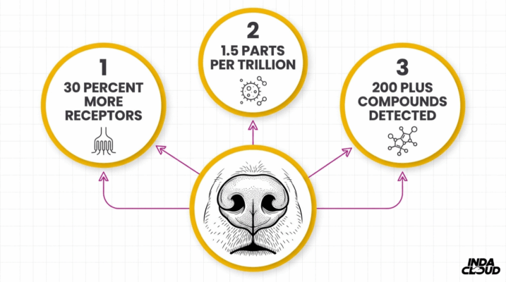 A dog’s nose contains roughly 30% more olfactory receptors than a human’s, with detection thresholds reaching as low as 1.5 parts per trillion. This biological architecture allows canines to decompose layered scents into individual chemical components, isolating cannabis signatures even within complex odor environments.