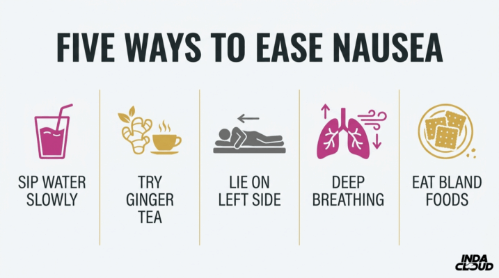 - Use natural remedies like ginger, deep breathing, hydration, and bland foods to ease nausea.