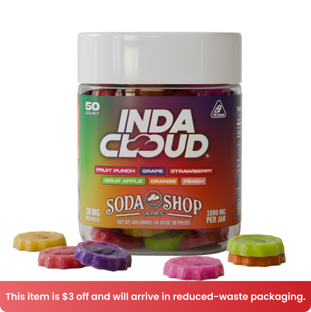Massive 50‑gummy jar packed with six nostalgic Soda Shop flavors, prime potency, and unmatched value for seasoned users seeking variety and strength.