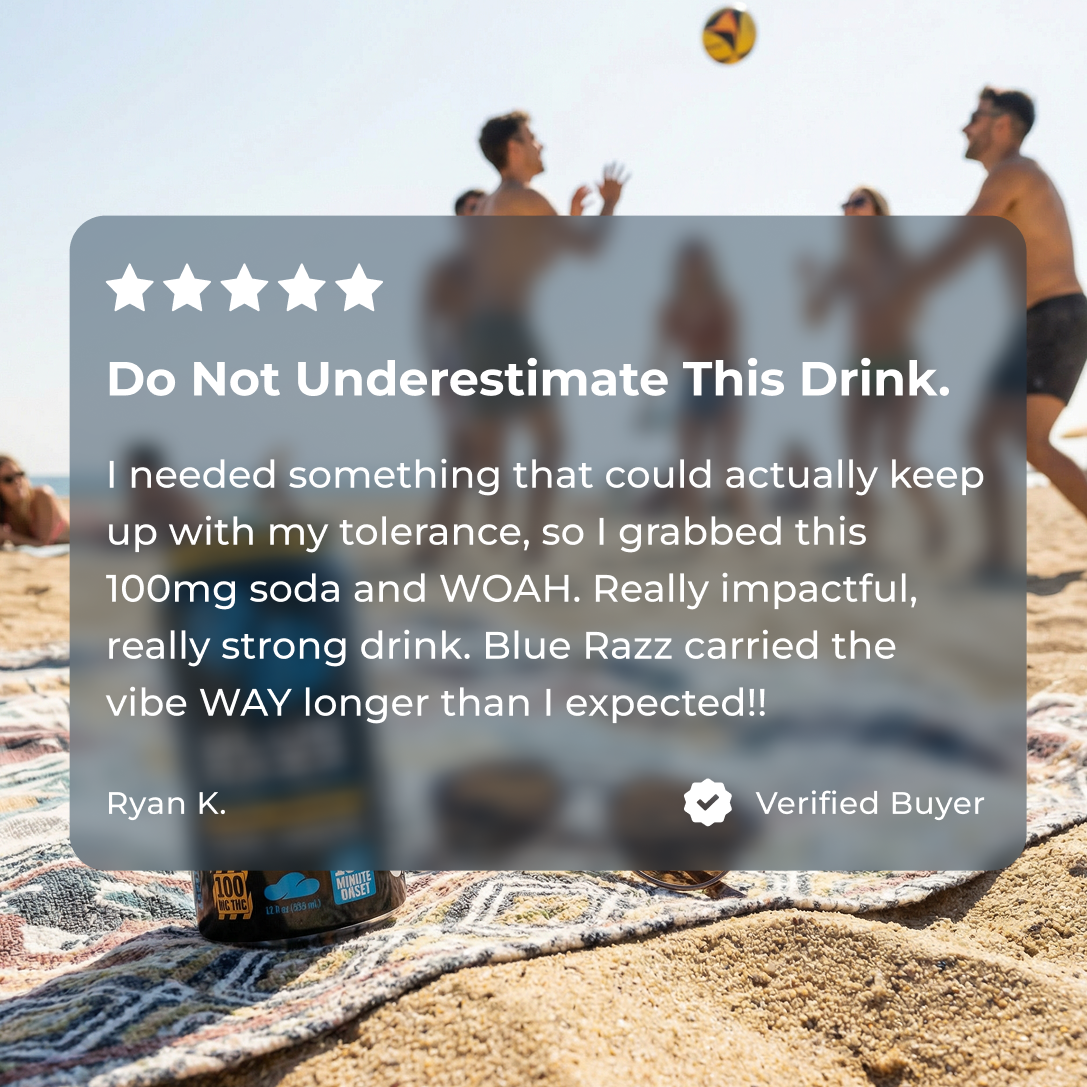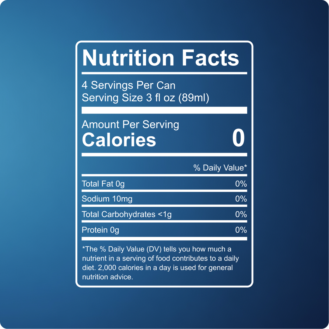 Carbonated RO Water, Natural Flavor, Acacia Gum, Tartaric Acid, Citric Acid, Phosphoric Acid, Sucralose, Salt, Hemp-Derived Delta 9 THC