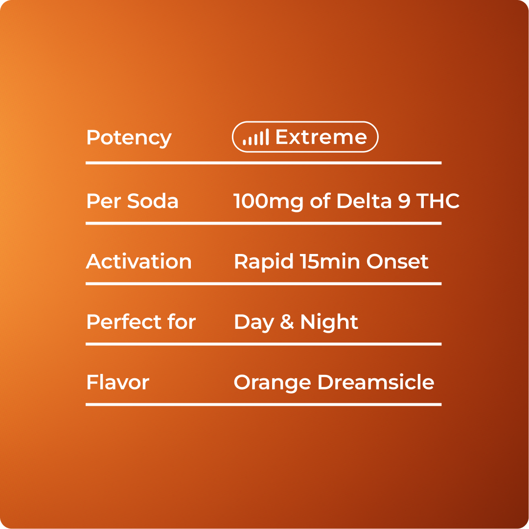 Carbonated RO Water, Natural Flavor, Acacia Gum, Tartaric Acid, Citric Acid, Phosphoric Acid, Sucralose, Salt, Hemp-Derived Delta 9 THC