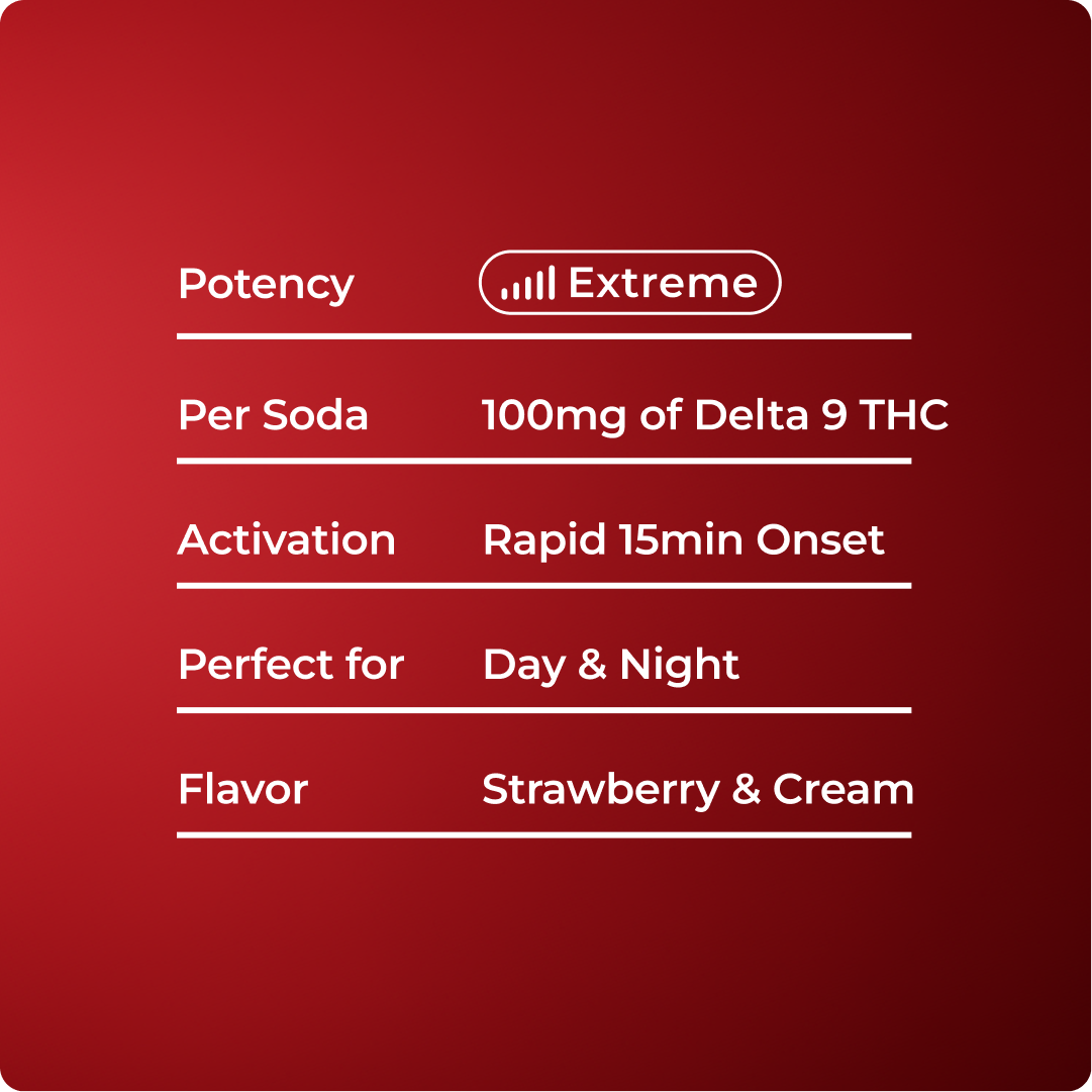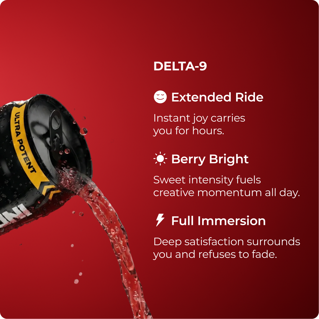 Carbonated RO Water, Natural Flavor, Acacia Gum, Tartaric Acid, Citric Acid, Phosphoric Acid, Sucralose, Salt, Hemp-Derived Delta 9 THC