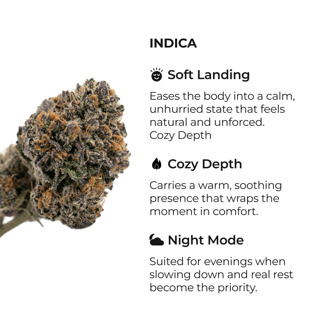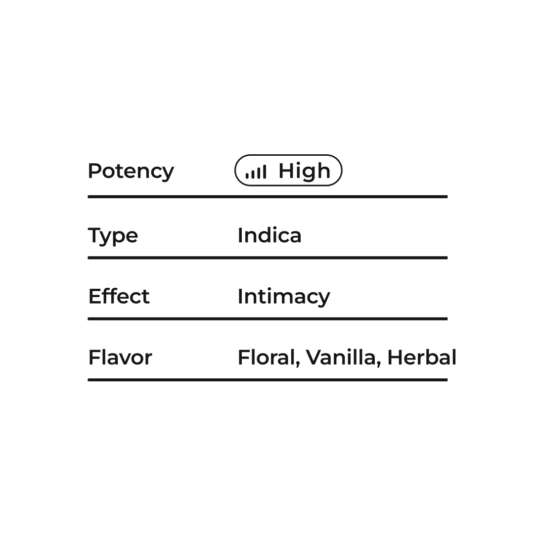 A soothing indica crafted for calm evenings, Love Potion melts tension with a warm, comforting mood that invites rest and connection.