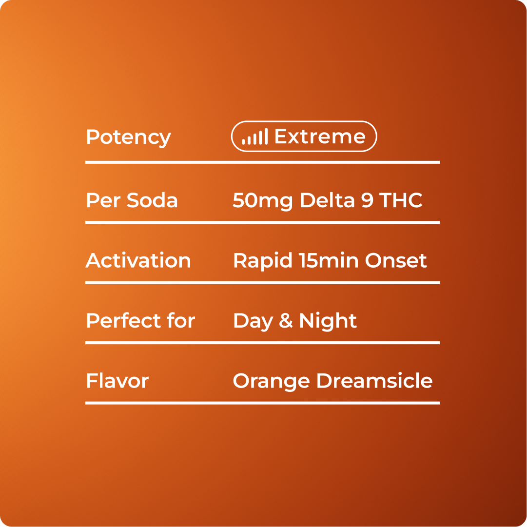 Creamy orange-vanilla flavor with a powerful 50mg dose. Rich taste, smooth impact designed for experienced consumers chasing deep calm and euphoric balance.