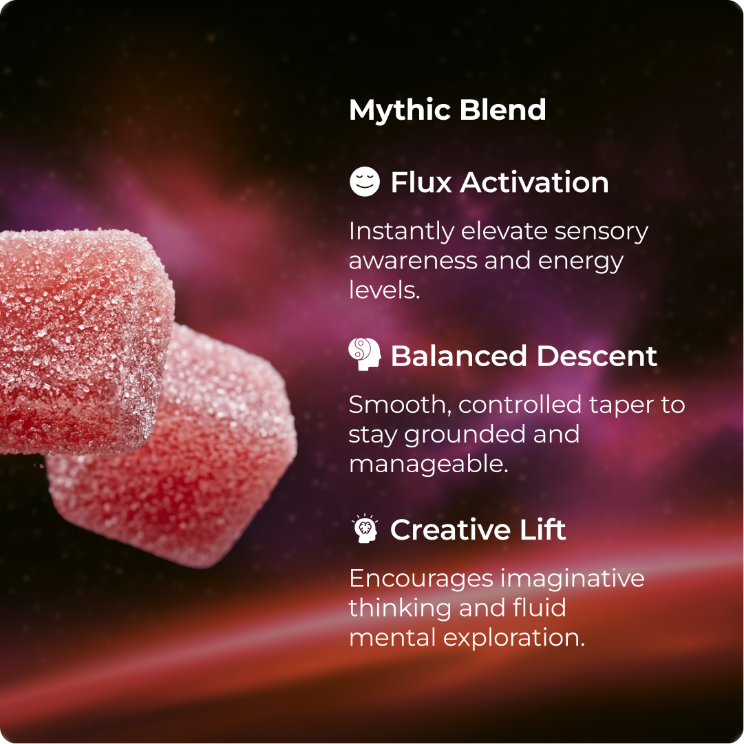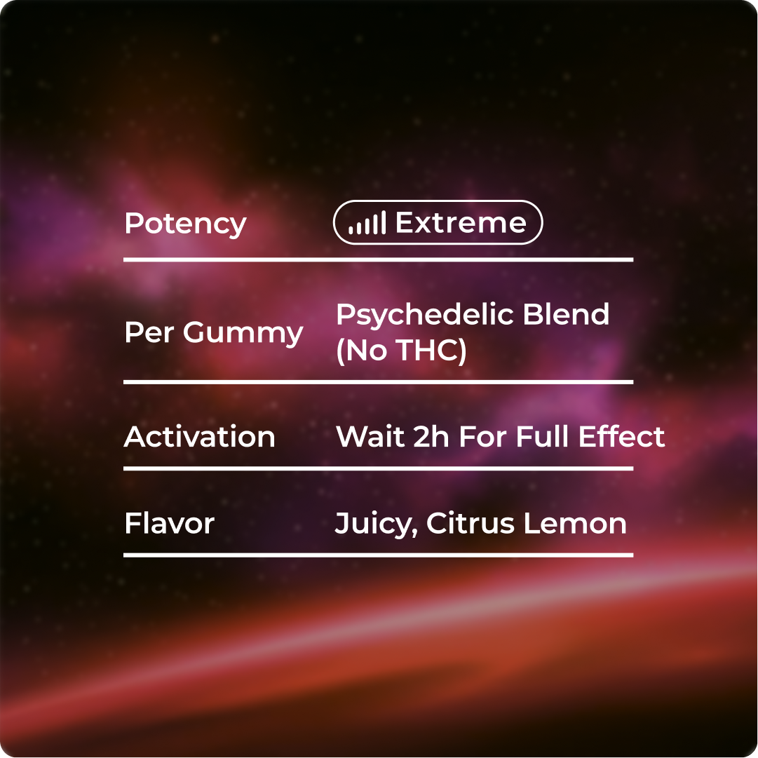 Juicy, pink psychedelic lemonade gummy crafted for an electrified mood and intense creativity with a smooth, balanced finish.