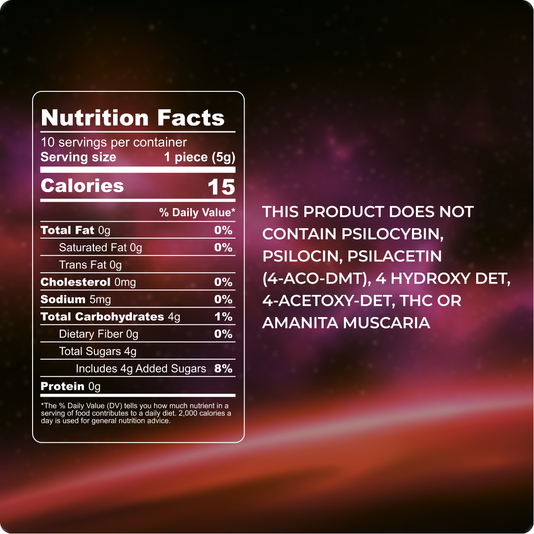 Corn syrup, Sugar, Water, Pectin, Less than 2% of Sodium Bicarbonate, Natural Flavor, Proprietary Mushroom Blend, Natural Food Color