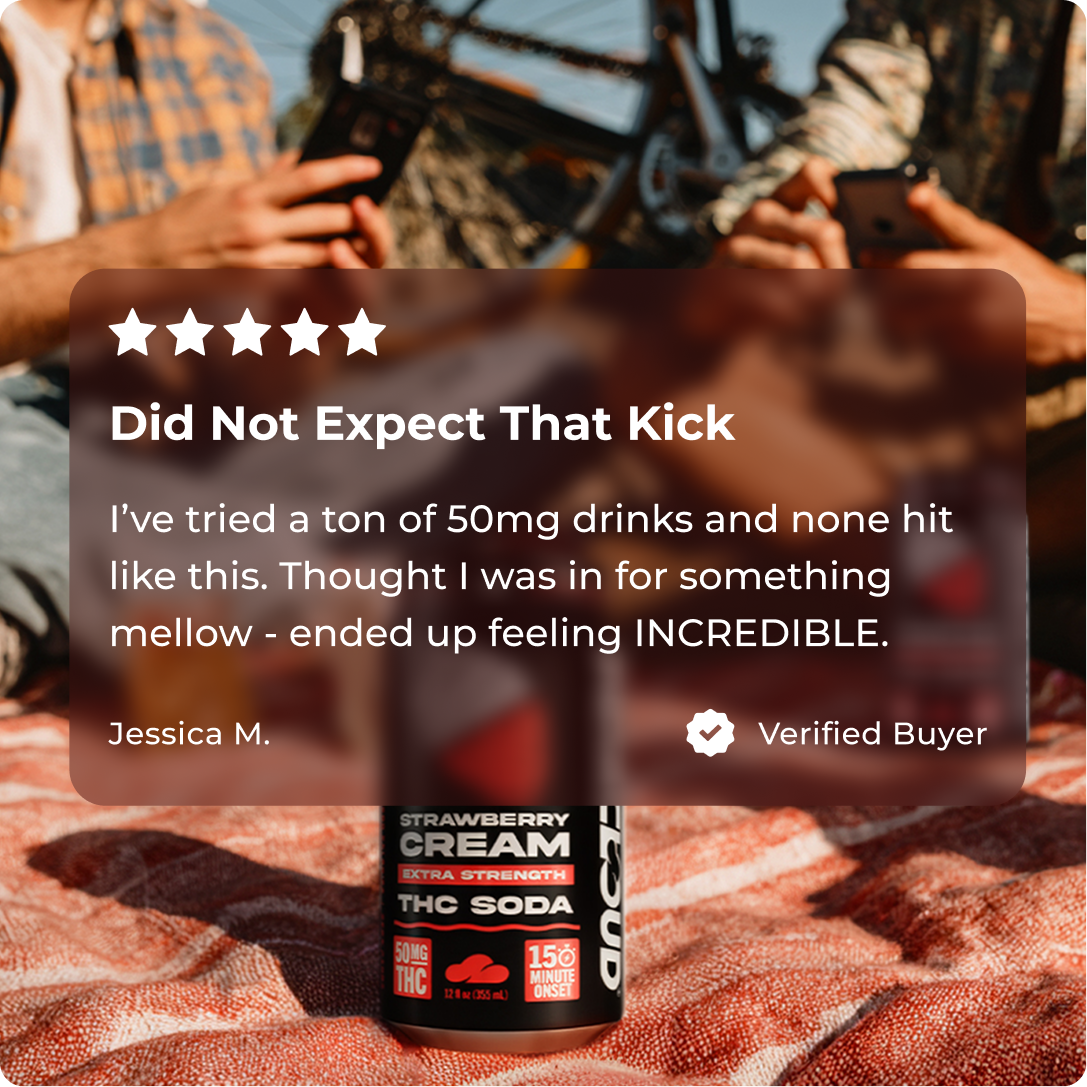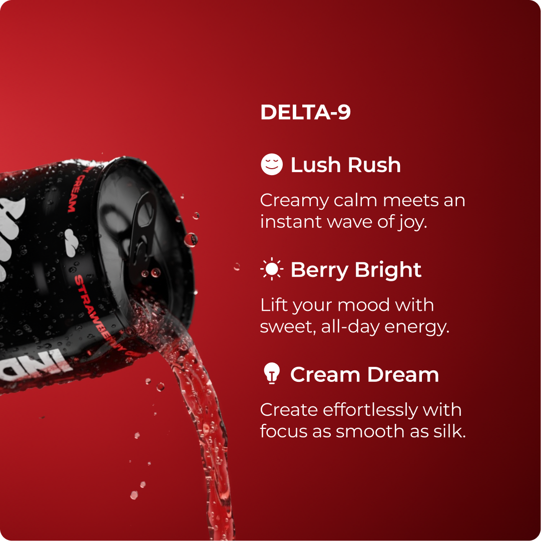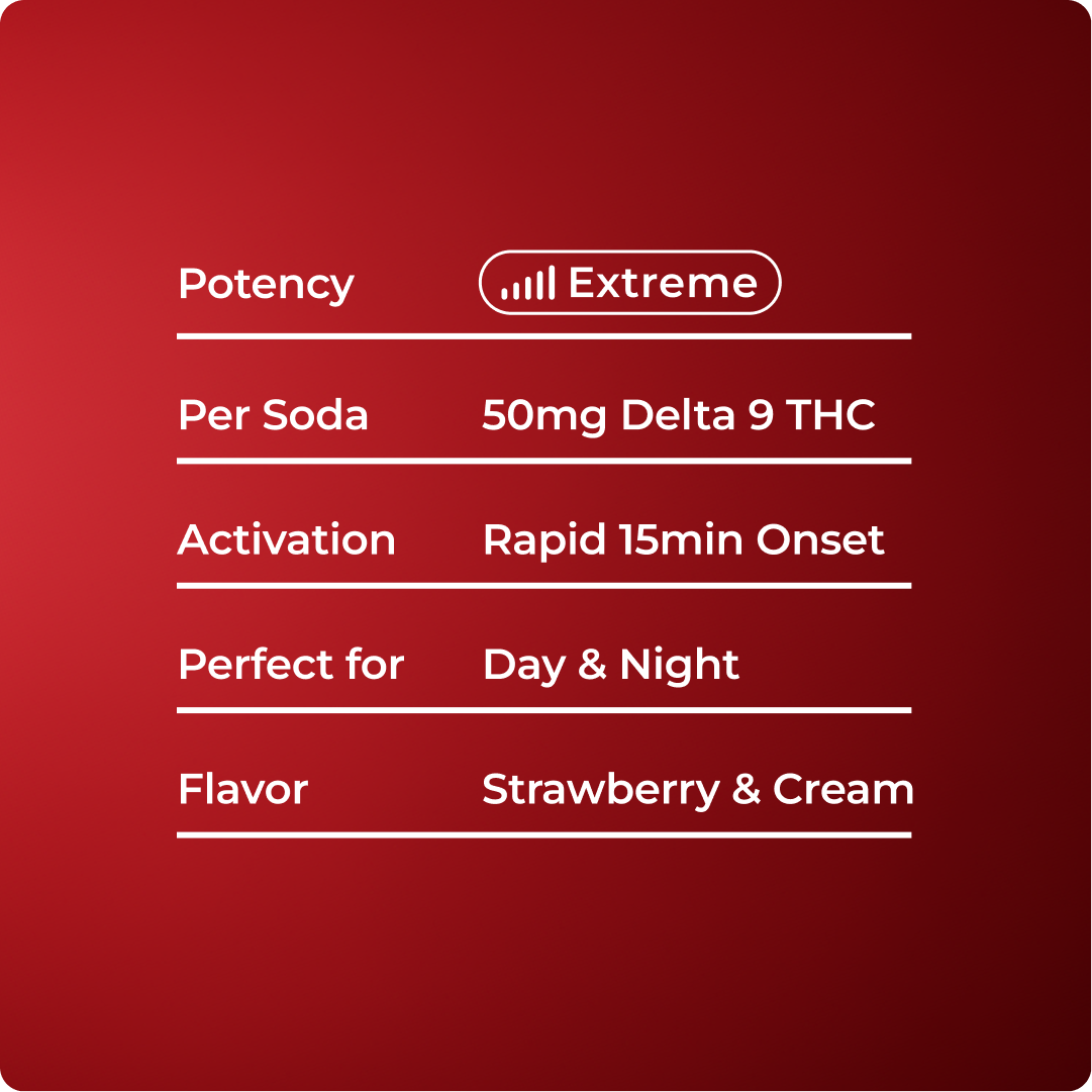 Carbonated RO Water, Natural Flavor, Acacia Gum, Tartaric Acid, Citric Acid, Phosphoric Acid, Sucralose, Salt, Hemp-Derived Delta 9 THC